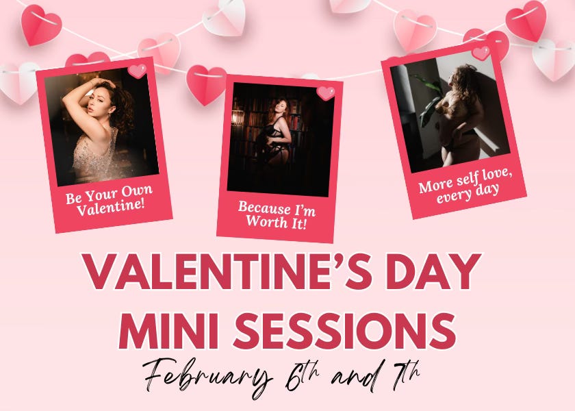 So this Valentine’s Day we are doing something a little different. I am opening a few V-Day mini session slots for people to lean into that ambiguous corner of luxury, done your way. These sessions are about creating art, holding yourself with softness, and letting your body exist without needing to be fixed, shrunk, or improved. It’s a time to remind yourself that you are worthy of dope things and you don’t need to beg for scraps. You get to claim what feels good to you!
